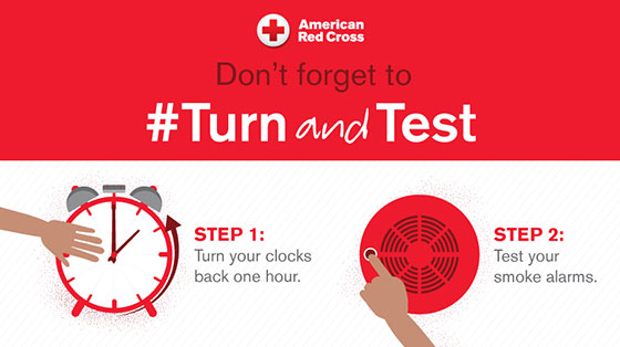 Daylight saving time ends this Sunday, November 3, and while many are looking forward to the extra hour of sleep that comes with “falling back,” it’s also a good time to have fire safety on your mind. As you turn your clocks back this weekend, the American Red Cross reminds you to also test your smoke alarms.