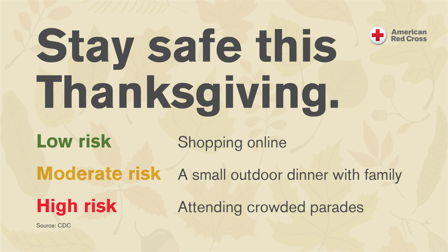 To help you and your family stay safe, the American Red Cross offers these cooking safety tips and recommendations from the Centers for Disease Control and Prevention (CDC) to help protect everyone’s health during Thanksgiving.
