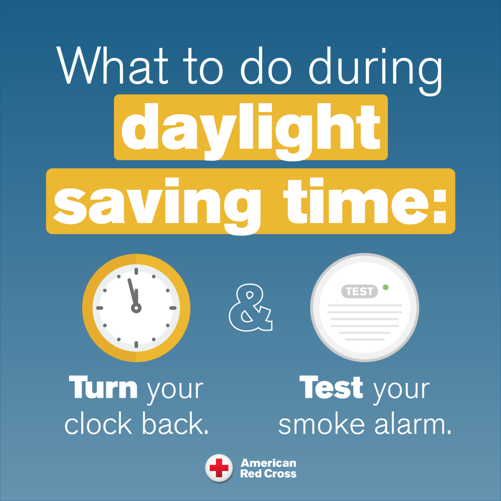 As people turn their clocks back this weekend for the end of daylight saving time, the American Red Cross asks everyone to also test their smoke alarms.
