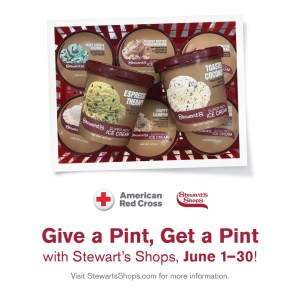 “If Stewart’s ice cream can encourage people to donate blood, we think that’s pretty sweet. We are proud to partner with the Red Cross for the past eight years to increase blood donations and raise awareness on the importance of donating. We hope that everyone that can donate will ‘Give a Pint and Get a Pint’ in June,” said Gary Dake, president of Stewart’s Shops.