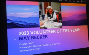 āWith 13,833 hours on record ā and many more that arenāt documented ā May has definitely been part of the running of the Red Cross chapter in Syracuse over the past 22 years and it is my privilege and honor to present this yearās Regional Volunteer of the Year Award to our very own May Becker.ā